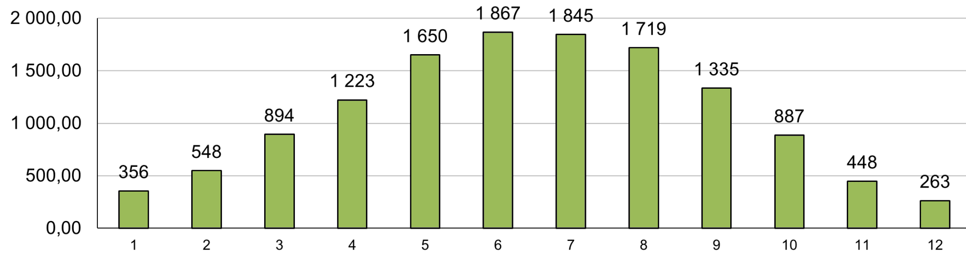 - Минимальная выработка летом — 55,45 кВт в сутки